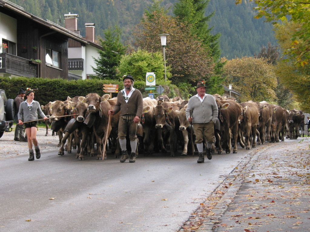 Der Viehscheid ist eines der Highlights in Hinterstein. Jedes Jahr am 11. September werden die Jungtiere von den Alpen abgetrieben und nach Hindelang zum Viehscheid gebracht. Dort das Vieh den Bauern übergeben. Das eigentliche "Ausscheiden". Daher auch der Name Viehscheid.